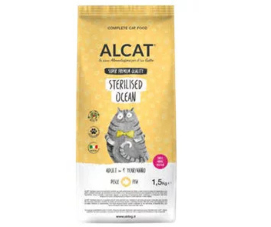 Az ALCAT® sterilizált Ocean egy teljes értékű eledel sterilizált felnőtt macskák számára, minden fajtához és mérethez, amely biztosítja macskájának a szükséges tápanyagokat, hogy fenntartsa vitalitását és jólétét a mozgásszegény életmód ellenére is. Első összetevőként hallal, hozzáadott színezékek és tartósítószerek nélkül. A fruktooligoszacharidok jelenléte hozzájárul a baktériumflóra jólétéhez, a yucca schidigera pedig segít enyhíteni a széklet és az alom szagát.