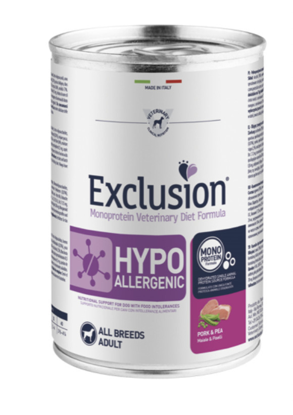 Az Exclusion Diet Hypoallergenic Pork and Pea egy teljesértékű diétás eledel felnőtt kutyák számára, melyet az összetevők és a tápanyag intollerancia csökkentésére fejlesztettek ki. Ez a komplett diétás eledel válogatott forrásból származó fehérjéket és szénhidrátokat tartalmaz.