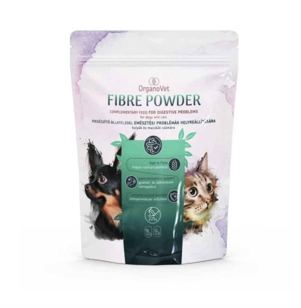 Az OrganoVet Fibre Boost (powder in pouch) 225 g egy kiegészítő állateledel kutyák és macskák számára. Oldható és oldhatatlan rostokat, pre- és probiotikumot tartalmaz, melyek segítenek fenntartani a bélrendszer egészséges működését. Szabályozza a perisztaltikát, ezáltal csökkenti a székrekedés kialakulásának valamint a végbélnyálkahártya berepedésének kockázatát.